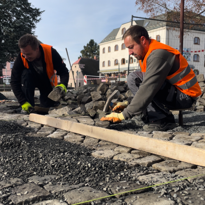 Celou rekonstrukci horní části náměstí jsme dokončili za 14 dní. Náměstí je dnes opět bezpečné, funkční a estetické, bez rizik propadů nebo uvolněných dlažebních kostek.